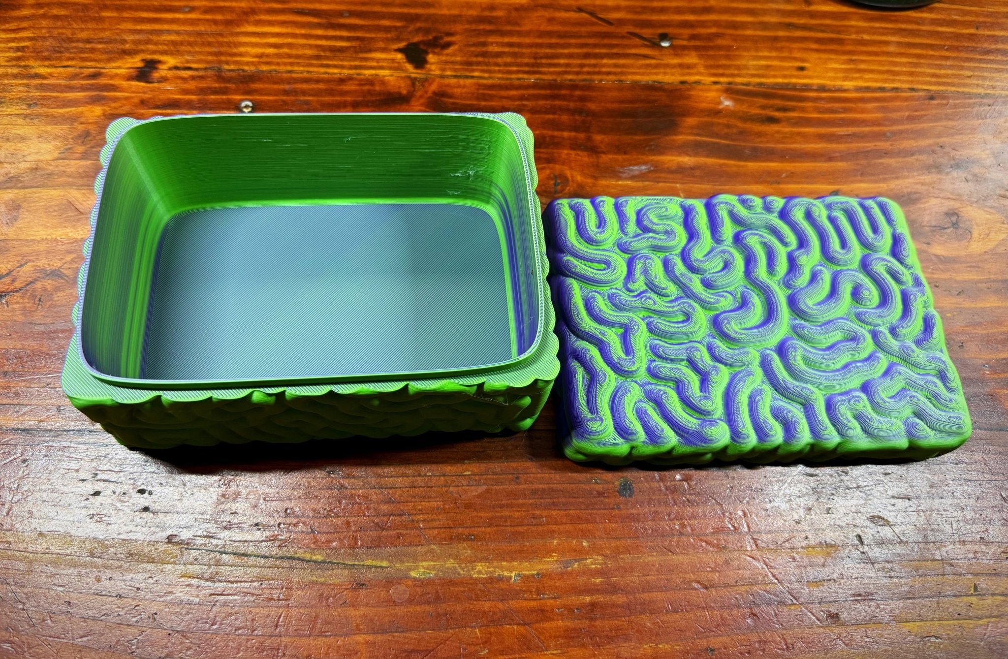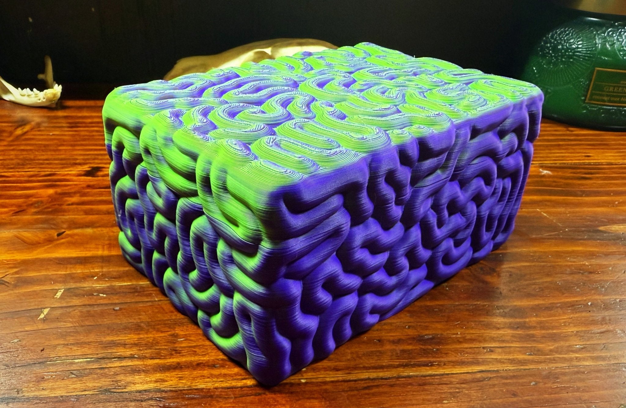 Brain Box Storage Container – green and purple | 6”x4”x3”