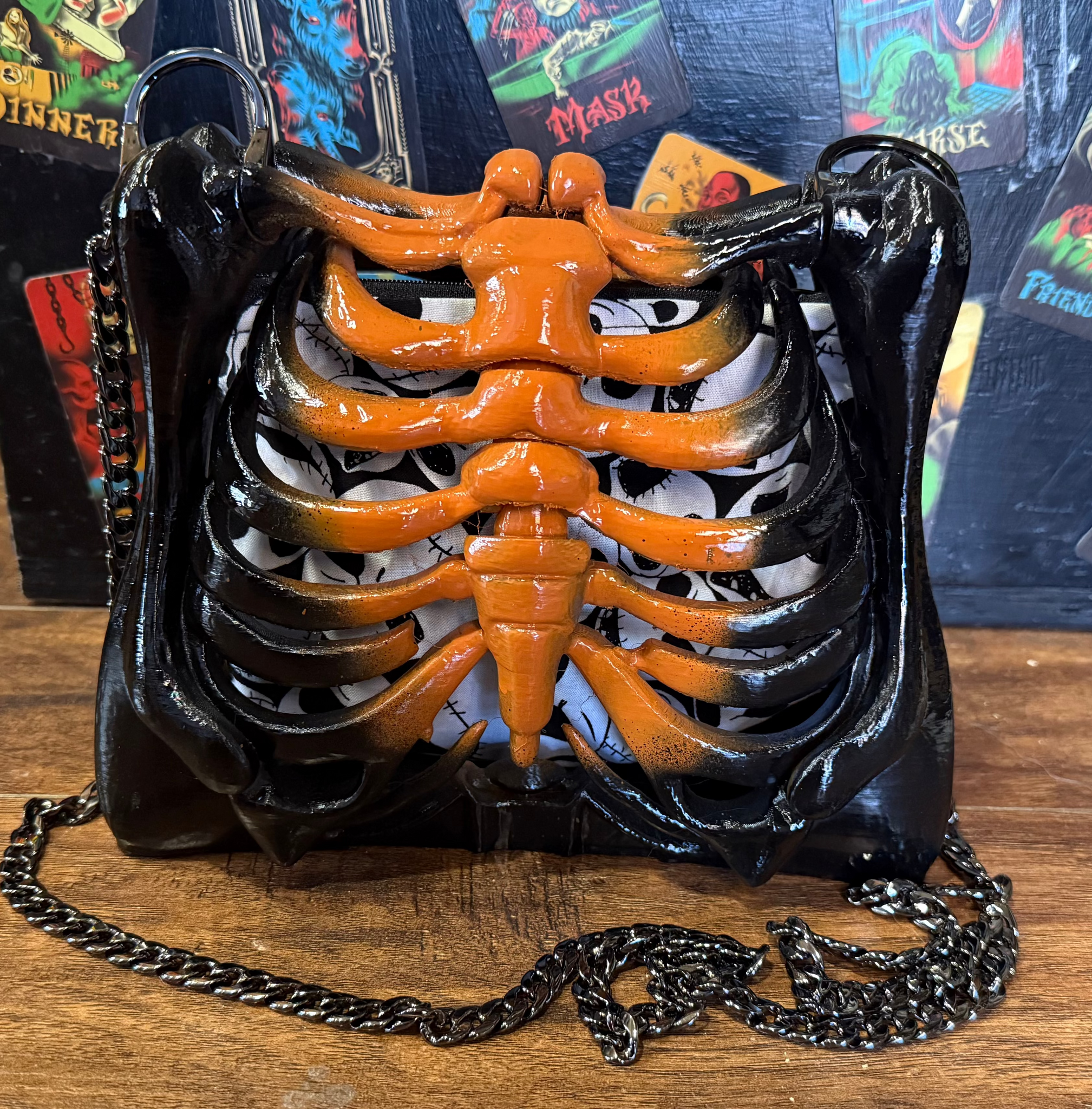 Turn heads with this one-of-a-kind ribcage bag β bold, spooky, and surprisingly practical. The hand-painted black and ourange finish makes it a relaxing and spooky piece, while the durable design keeps it ready for daily adventures.