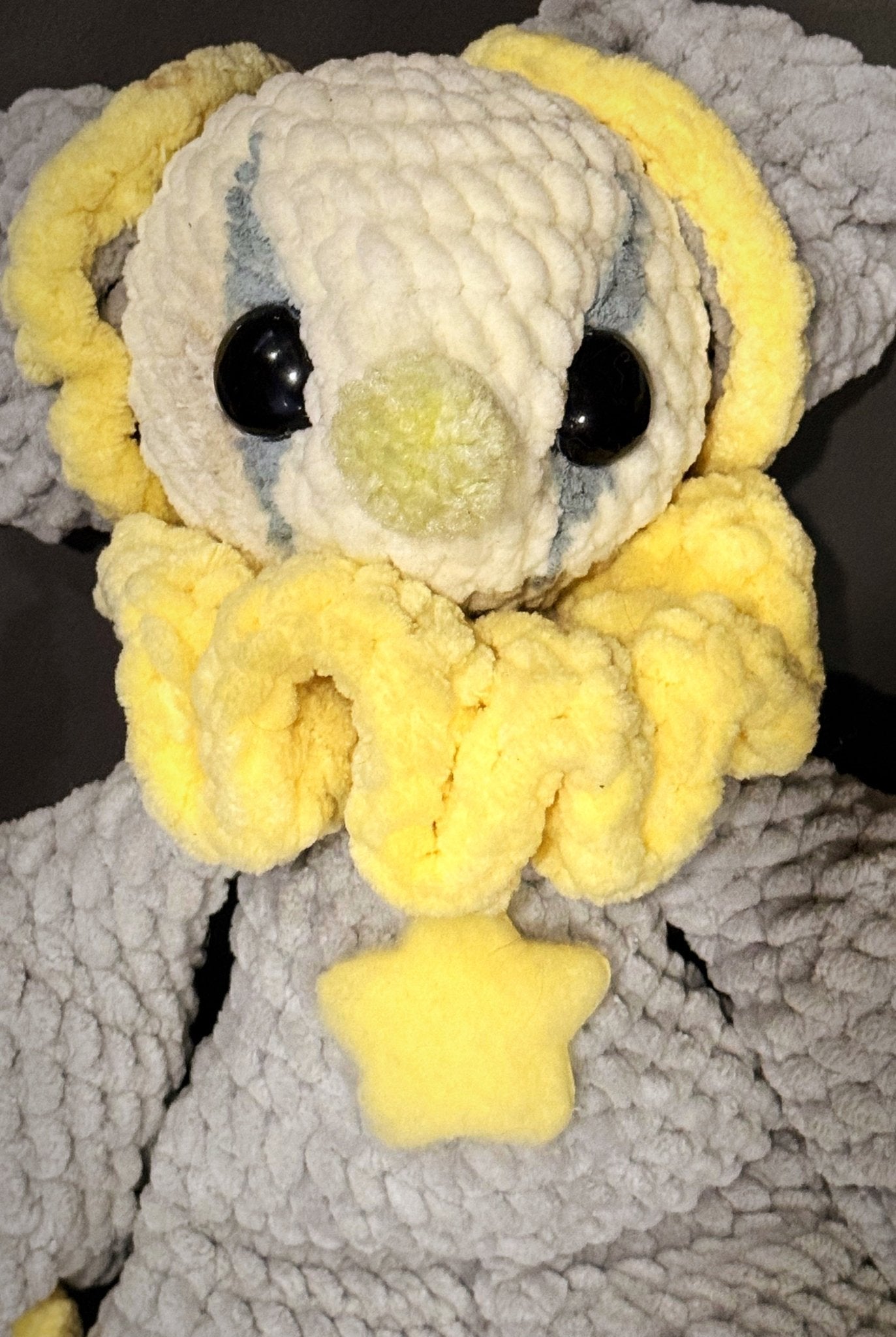 Standing approximately 15 inches tall, Moonlight is entirely handmade with ultra-soft plush yarn, making them perfect for cuddling, displaying, or gifting to someone who lives a little on the whimsical side. Finished with delicate details and that unmistakable creepy-cute charm—no two Moonlights are ever exactly alike.