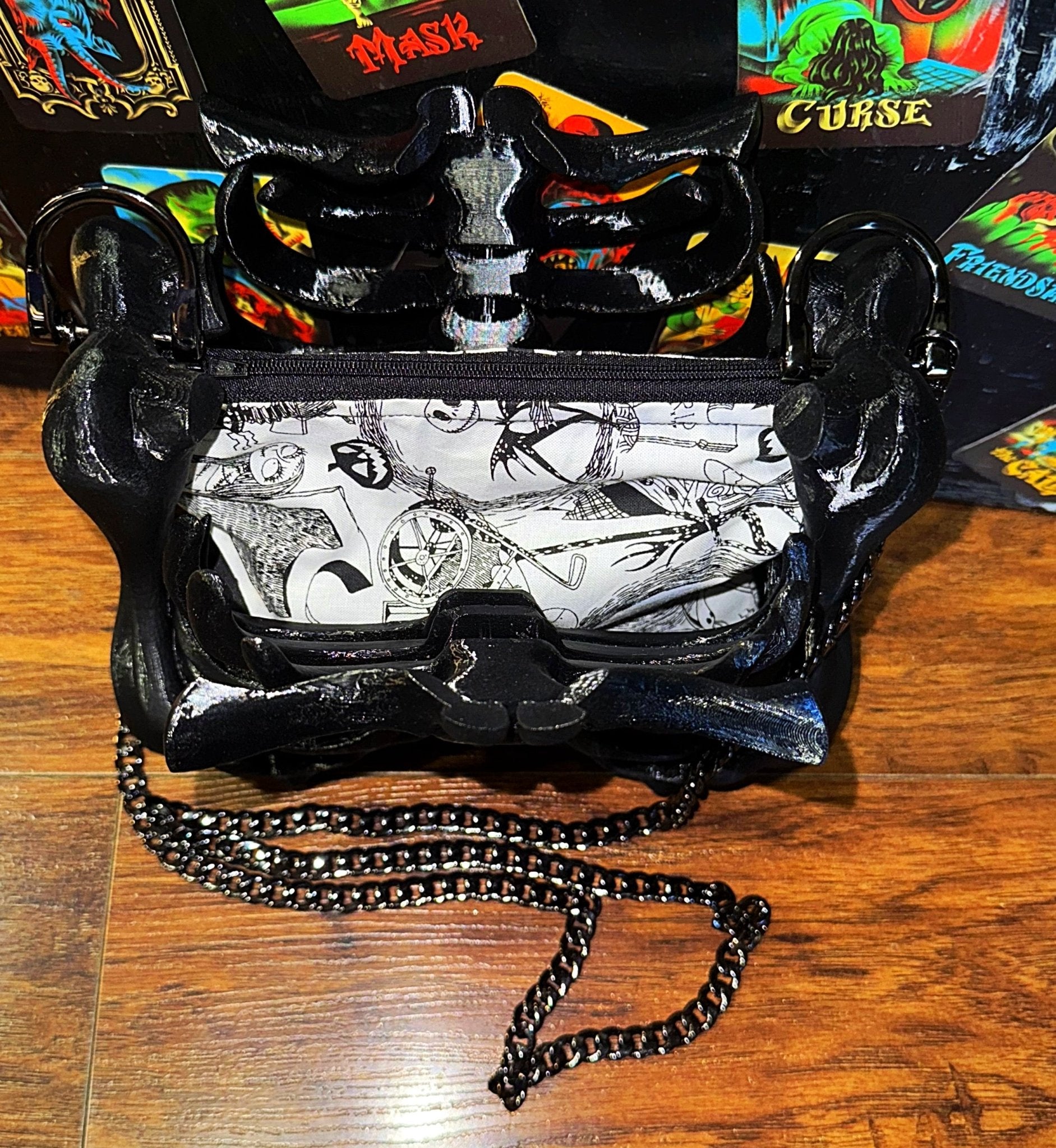 Turn heads with this one-of-a-kind ribcage bag — bold, spooky, and surprisingly practical. The hand-painted black finish makes it a relaxing and spooky piece, while the durable design keeps it ready for daily adventures.