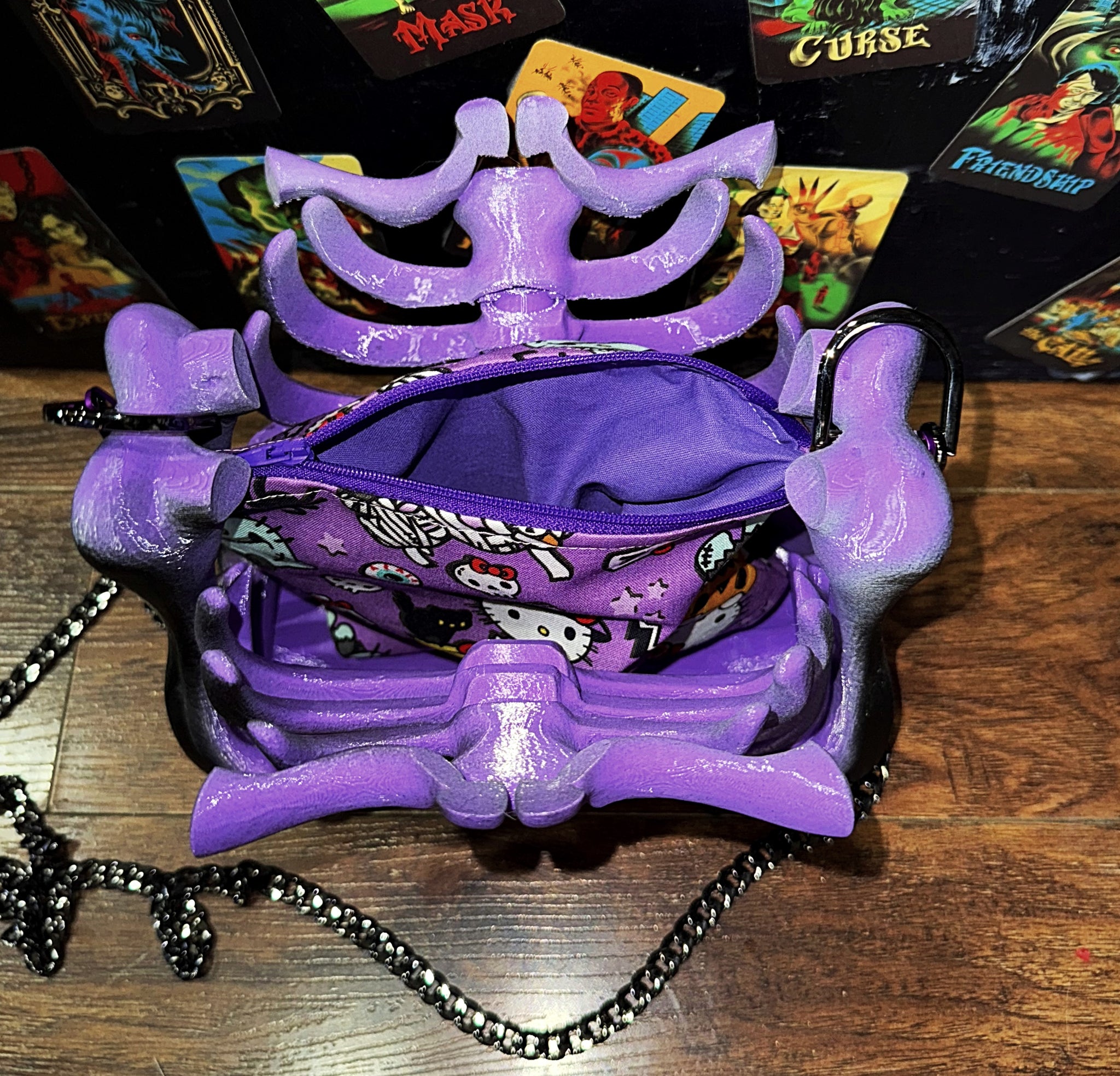 Ribcage Bag - Hand Painted- One of a Kind Purple Goth