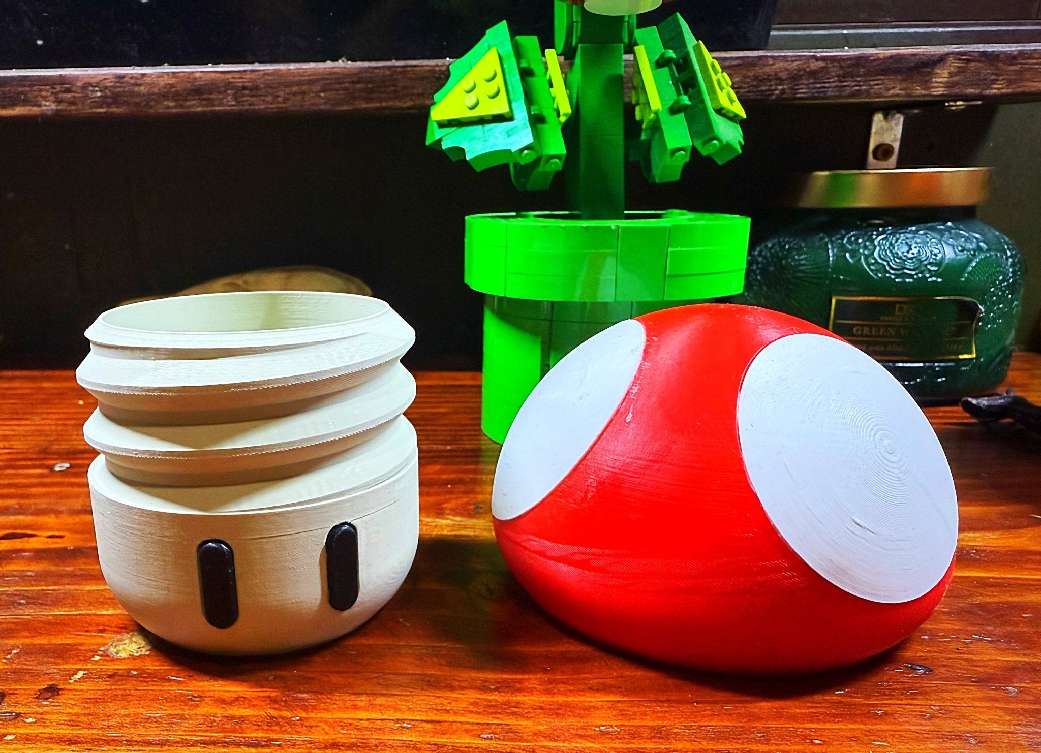 Level up your storage game with these Super Mario Mushroom Stash Jars—adorably modeled after the iconic mushrooms from the Super Mario universe! Each jar is 3D printed with a snug-fitting, color-popped mushroom cap lid that lifts off to reveal a roomy container, perfect for holding coins, herbs, dice, candies, or any other power-up you need to keep safe.