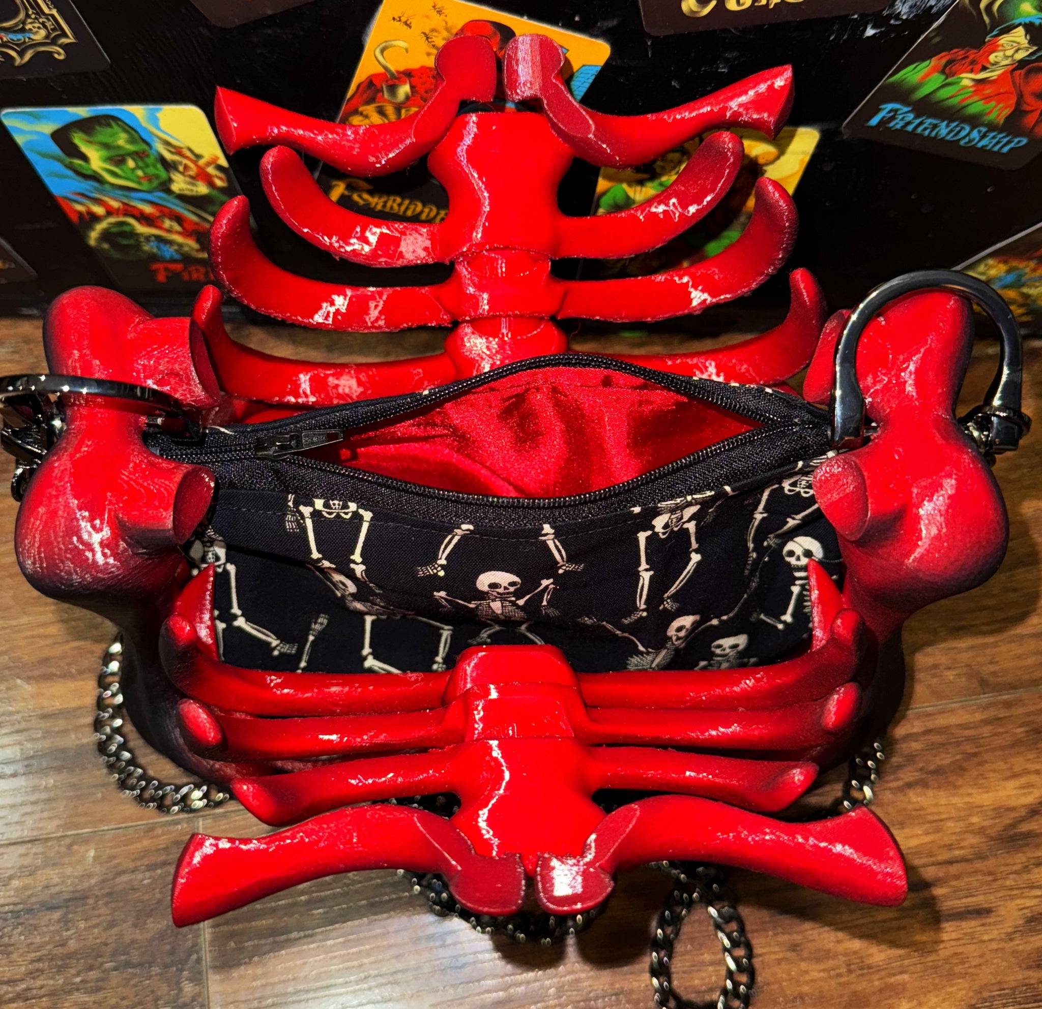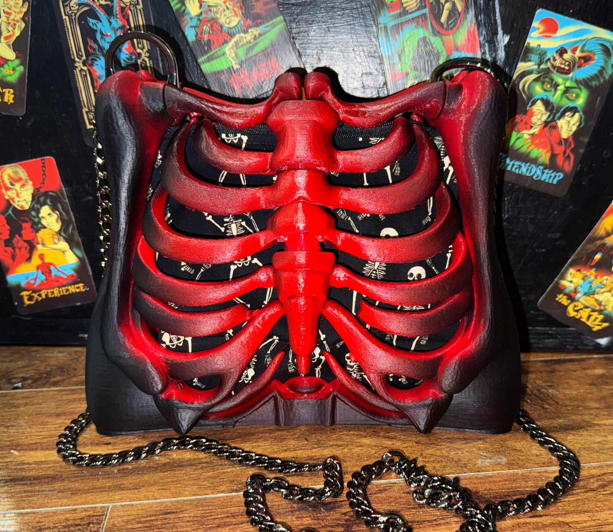 Turn heads with this one-of-a-kind ribcage bag — bold, spooky, and surprisingly practical. The hand-painted black finish makes it a relaxing and spooky piece, while the durable design keeps it ready for daily adventures.