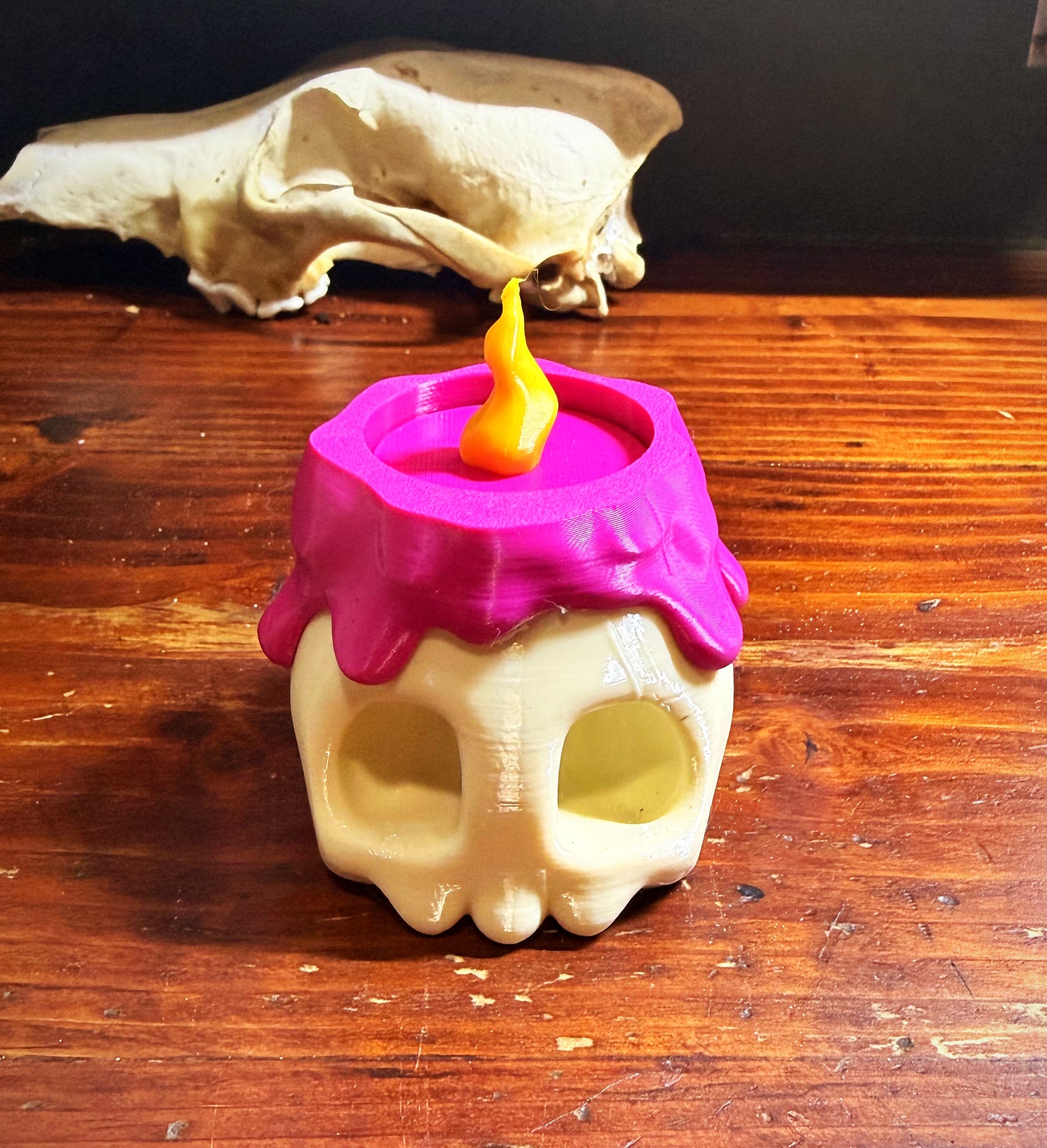 Unleash a little gothic flair in your space with our Skull Candle Stash Box, a clever fusion of spooky décor and secret storage. Expertly 3D‑printed in durable PLA, this striking piece looks like a skull candle mid‑melt—complete with a removable “wax” lid that reveals a hidden compartment.